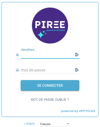 https://piree.upcyclea.com/ à l'aide de votre identifiant et de votre mot de passe.