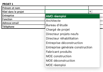 - Cordonnées et rôles des parties prenantes du réemploi (MOE, AMO, ...) sur les projets